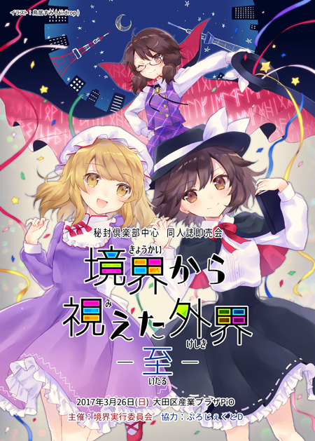 「境界から視えた外界(けしき)」は原作/ZUN様(上海アリス幻樂団)と直接の関係はございません。 当イベントに関するご意見、お問い合わせは境界実行委員会へお願い致します。 主催/境界実行委員会 info@kyoukai.biz Since:2010/01/15 |